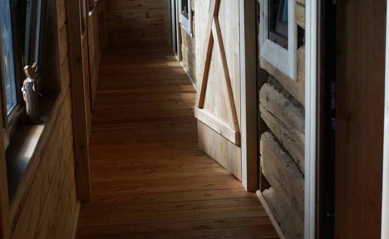 z nowymi deskami z modrzewia.