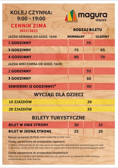 Możliwość skorzystania z porad instruktorów narciarstwa, wypożyczalnia sprzętu oraz serwis narciarski.