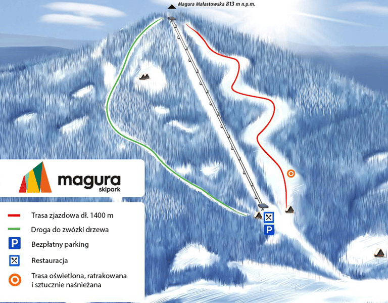 Stacja narciarska Magura Ski Park zlokalizowana jest w sercu Beskidu Niskiego. Dzięki dużej różnicy poziomów ( 260 m) i górnej stacji położonej na wysokości 813 m pod szczytem Magury Małastowskiej trasa jest określana jako średnio trudna. Czteroosobowa kolej krzesełkowa obsługuje jedną trasę zjazdową o długości 1400m. Przy dolnej stacji kolei krzesełkowej wyciąg narciarski Radzio o długości 60 m dla dzieci i osób rozpoczynających naukę. Cechy stoku: sztuczne oświetlenie, parking darmowy, naśnieżanie trasy, ratrakowanie tras, szkółka narciarska.